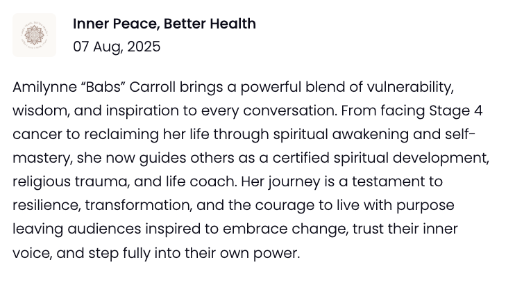 “This book has enriched my approach to coaching clients on their wellness journeys. The practical exercises and spiritual insights in Conversations of Consequence empower individuals to listen to their inner guidance and make holistic lifestyle changes. AmiLynne’s wisdom is both practical and profound.”